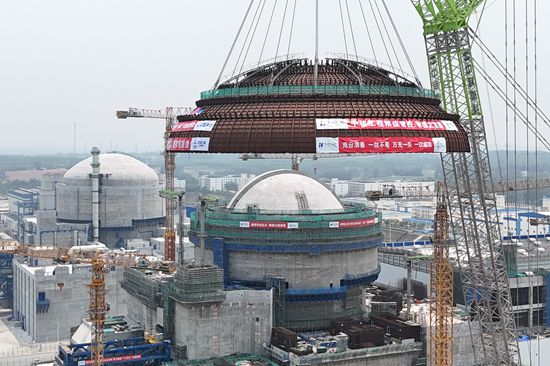 4月13日,华能昌江核电二期工程4号机组外穹顶模块成功吊装就位,标志着4号机组核岛主体结构施工基本完成。